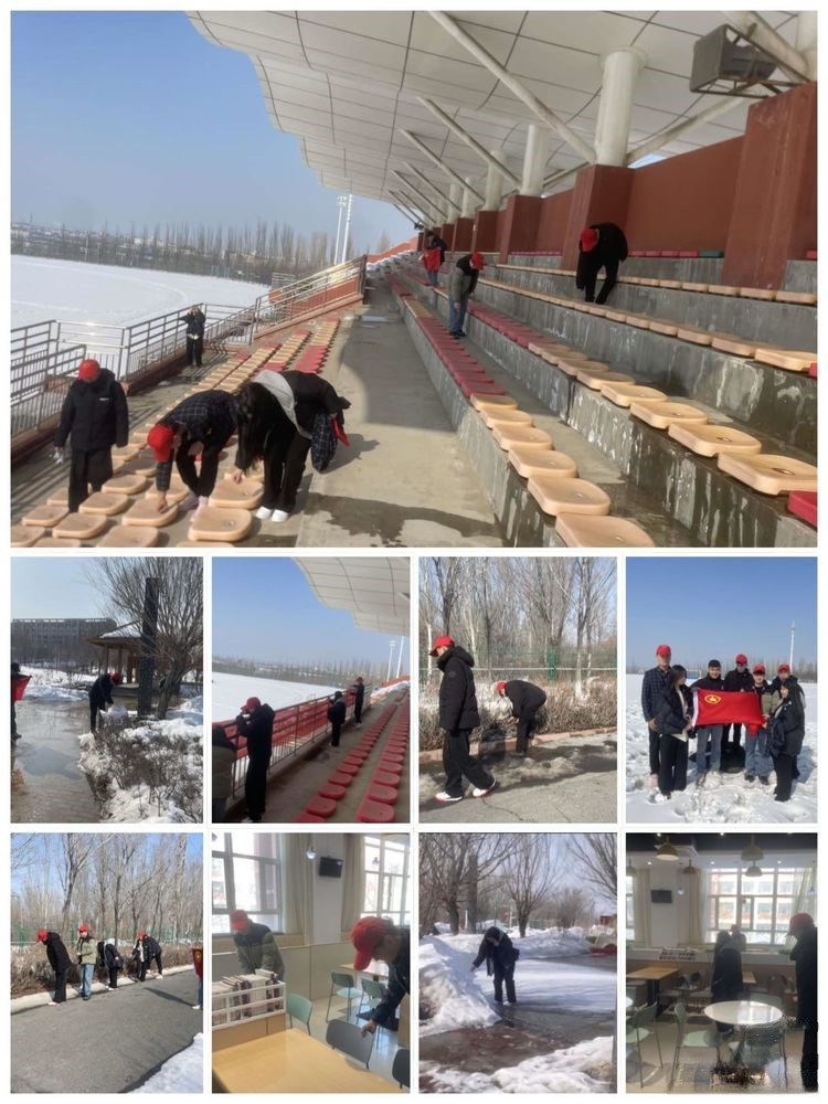 随后,青年志愿者们又来到了田径场和校园各处,手持扫帚、垃圾袋等工具,认真清扫地面垃圾,清理卫生死角,不放过任何一个细节,让校园焕然一新。之后青年志愿者们又前往食堂,整理桌椅,协助工作人员维持秩序,清理餐桌,确保用餐环境整洁有序。在活动中,同学们发扬了不怕脏、不怕累的精神,用实际行动践行了雷锋精神,展现了新时代青少年的良好风貌。此次活动不仅美化了校园环境,更增强了同学们的团队协作能力和社会责任感,让雷锋精神在校园内生根发芽,绽放光彩。