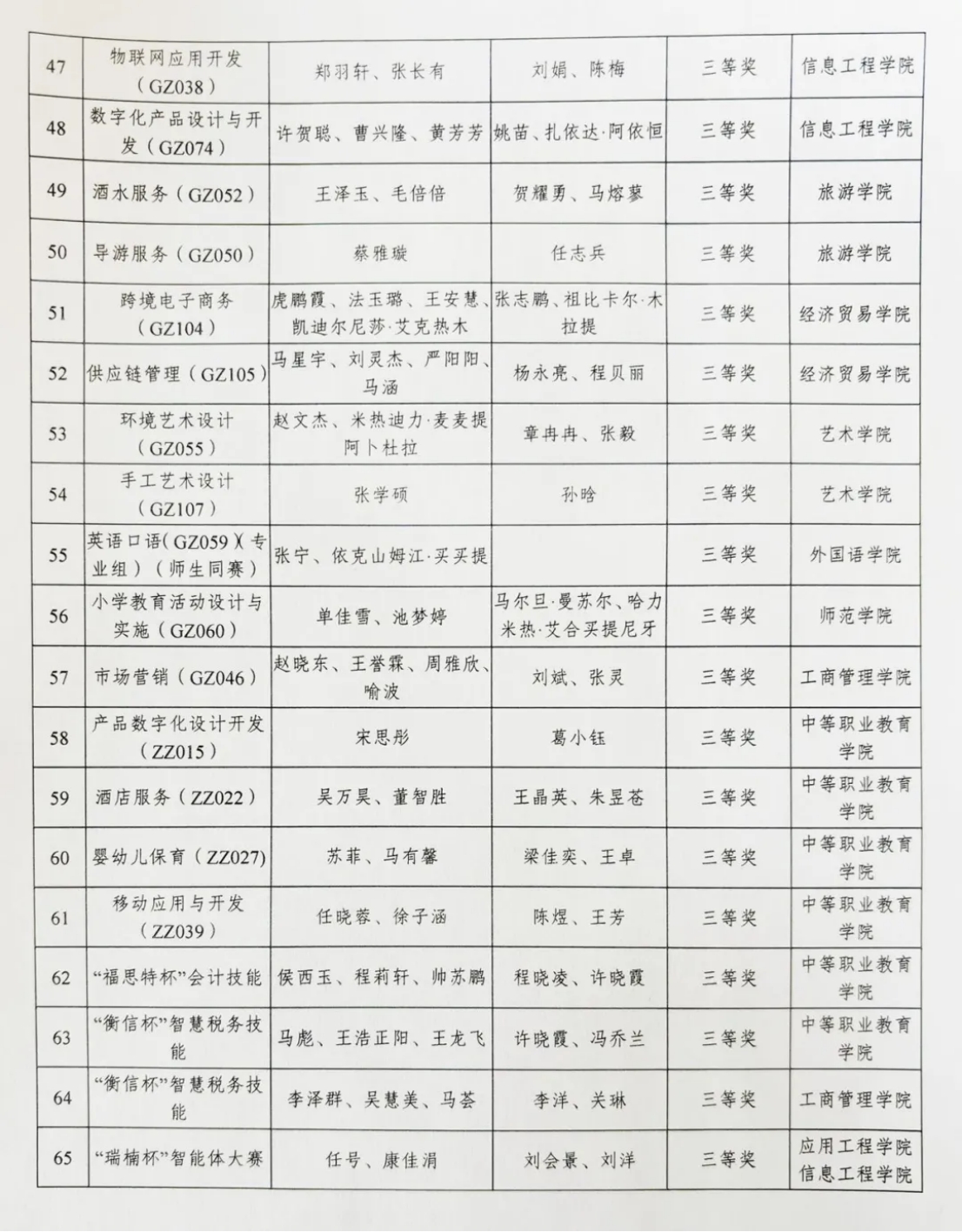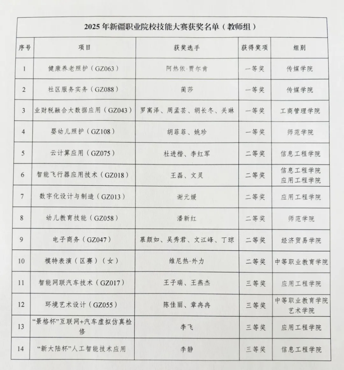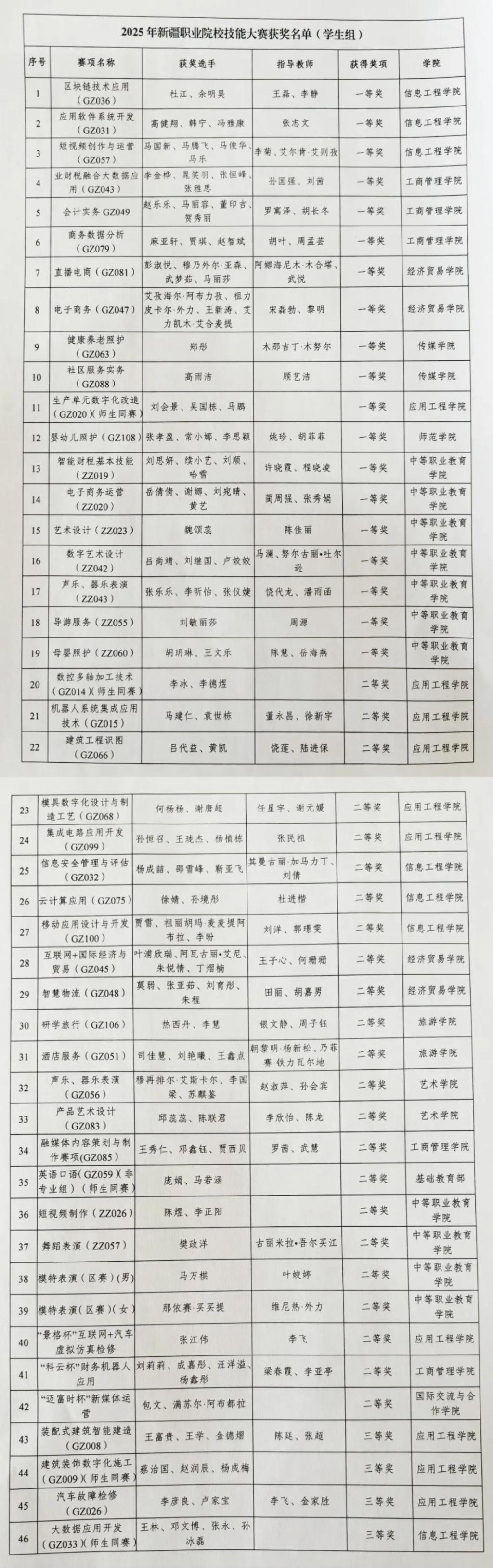 近日,自治区教育厅公布了2025年新疆职业院校技能大赛比赛结果,我校303名师生选手参加了112个赛项的角逐,共有79个赛项171名师生获奖。其中,一等奖23项,二等奖29项,三等奖27项。