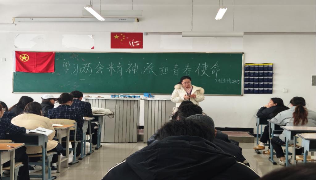 为教育引导学生以习近平新时代中国特色社会主义思想为指引,坚定理想信念,勇担时代责任,努力学习、宣传、贯彻和落实“两会”精神。乌鲁木齐职业大学应用工程学院于2025年3月12日16:40在各班教室组织开展以“学习两会精神,勇担青春使命”为主题的班会。