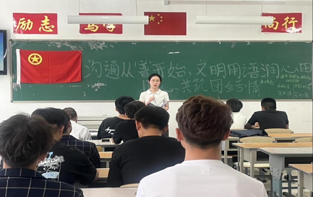 为切实铸牢中华民族共同体意识,做到有形有感有效推进民族团结工作,全面、精准落实新时代党的治疆方略,扎实推动文化润疆工程走深走实,乌鲁木齐职业大学应用工程学院于2025年5月14日,在各班级教室开展了以“沟通从‘普’启航,文明用语润心房,同心共筑团结章”为主题的德育活动。本次活动由各班班主任担任主持人,引领同学们开启了一场语言与文明交融的探索之旅。