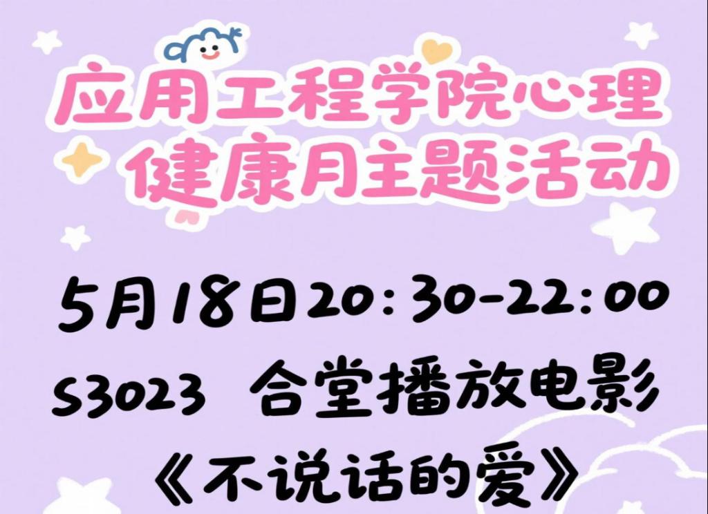 为深入践行心理健康教育理念,切实增强同学们的心理健康意识,积极营造健康向上、充满关爱的心理文化氛围,乌鲁木齐职业大学应用工程学院于2025年5月18日20:30-22:00,在S2030教室精心组织了一场意义非凡的暖心电影放映活动。